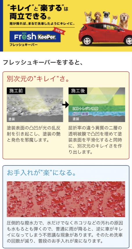 そして大切なお車を守る、カーコーティング キーパーコーティングをご案内しています。