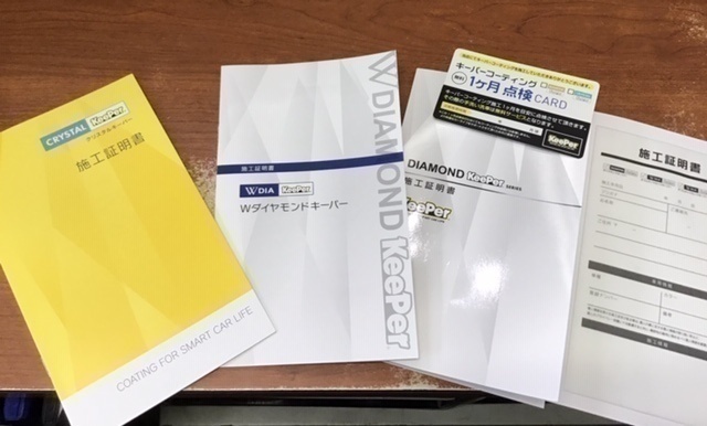 当店の各種コーティングには施工証明書を発行させていただいております。