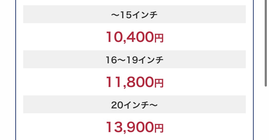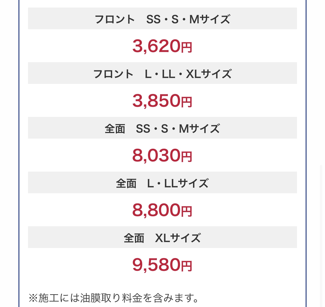 手洗い洗車・コーティングの料金は、お車のサイズで分かれています。