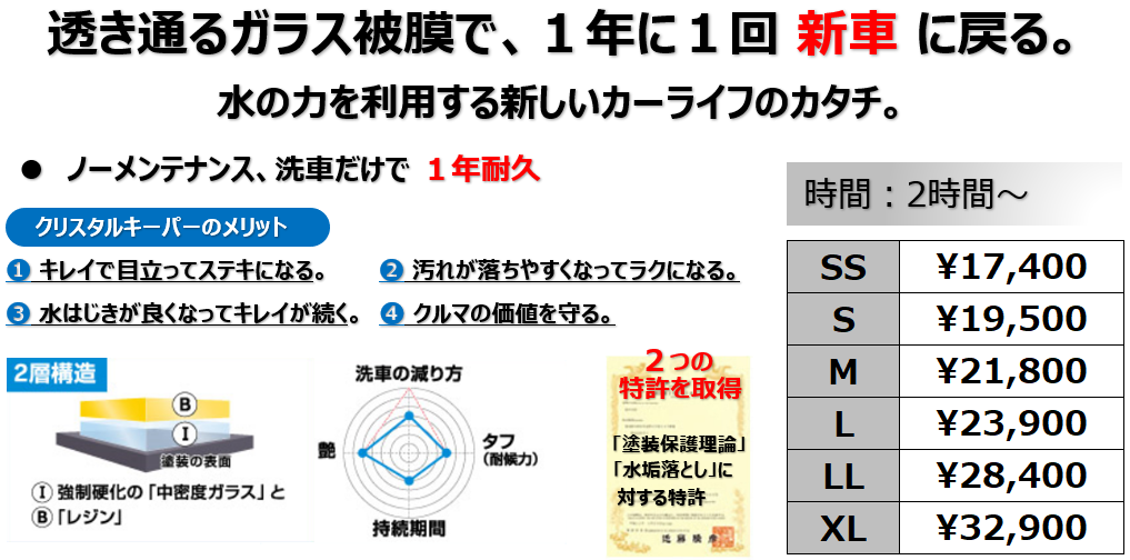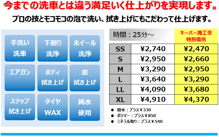 12月の施工を店頭予約で手洗い洗車4回無料が付いてくる!