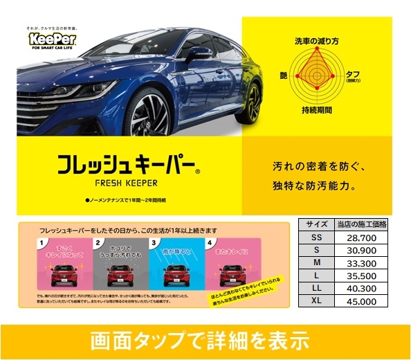 A:当店はkeeperLABOと同じ、お車の体積でサイズわけをさせていただいております。