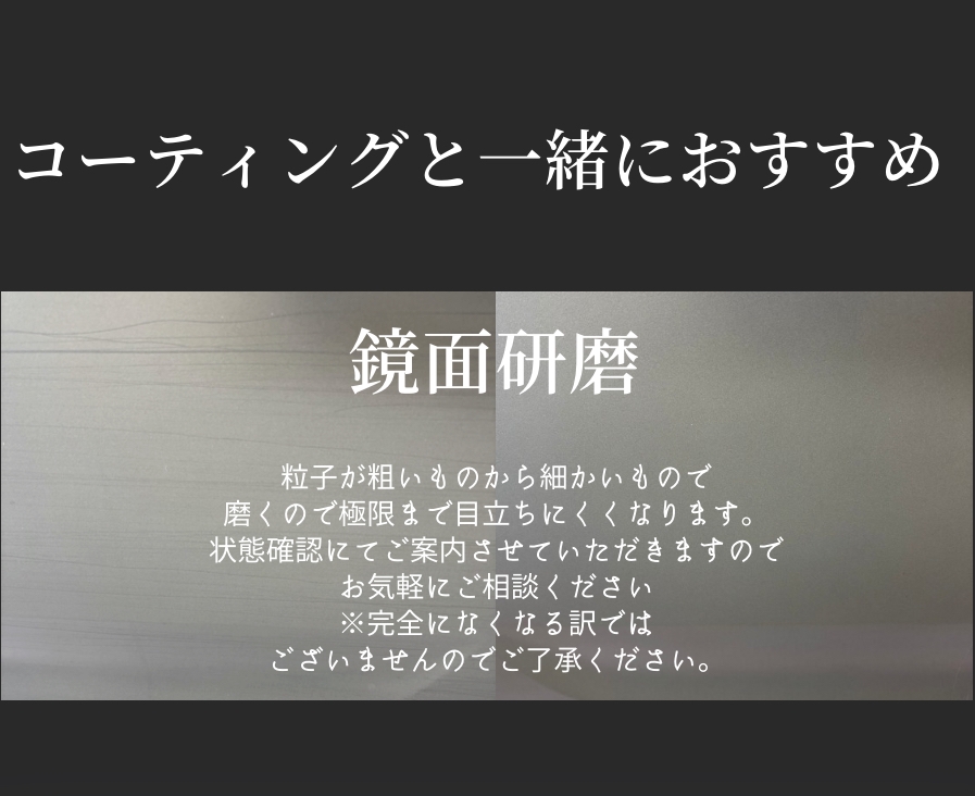 また、鈑金・部品交換により部分的にコーティングが無くなった際には、そのピース(パーツ毎)だけのコーティング部分施工も承っておりますのでお気軽にご相談ください。