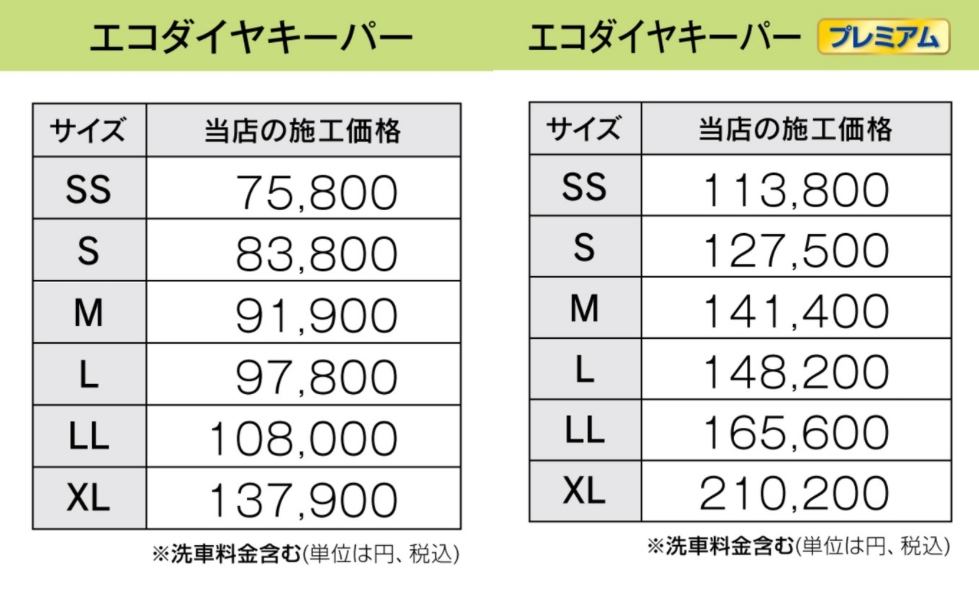 ※上記のECOダイヤモンドキーパーとの違いは作業時間・耐久年数の違いです。