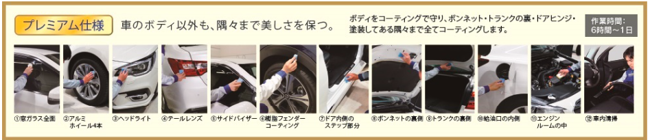 プレミアム仕様(各種コーティングのオプションメニュー) ※3年以上のコーティング(ダイヤモンドキーパー以上)で選択出来ます