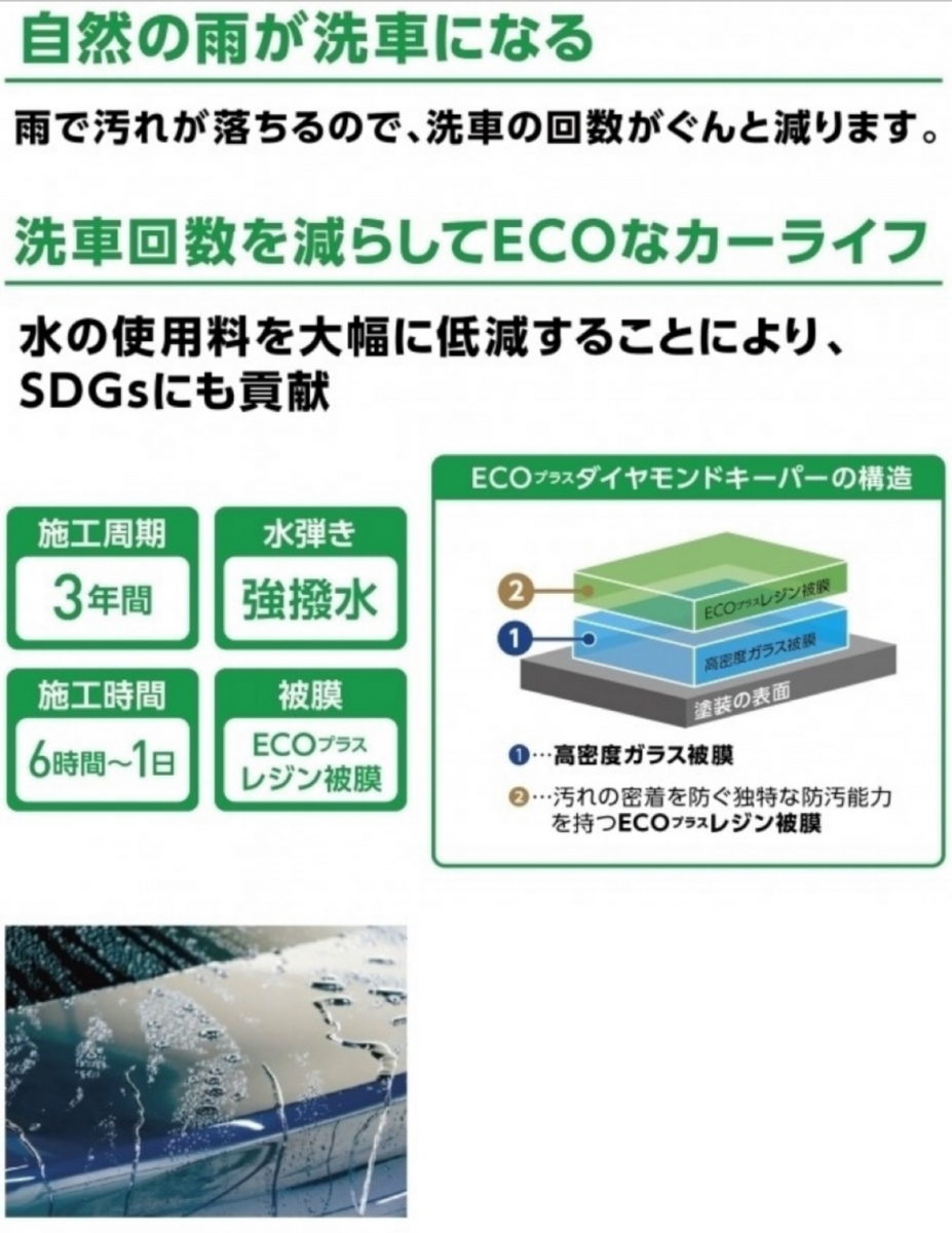 「雨が降って綺麗になる」自浄作用という特徴を持ったカーコーティングです。