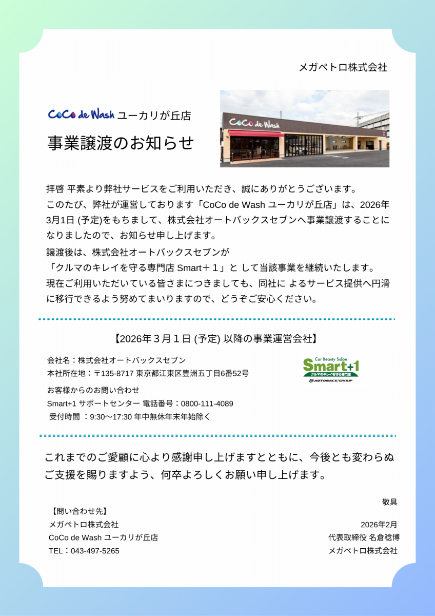 - 洗車・コーティング営業時間