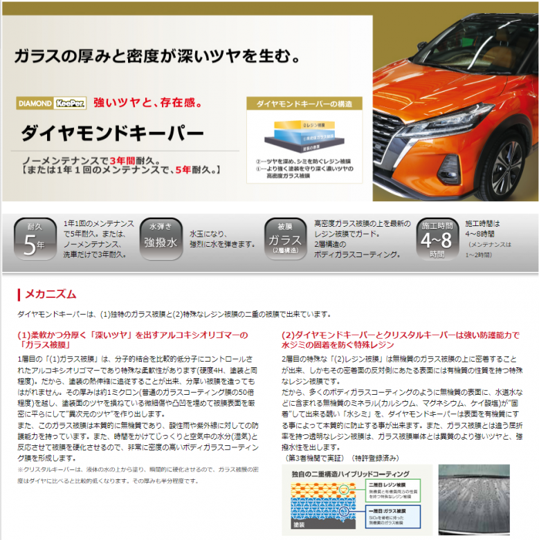 特にダイヤモンドキーパーはドイツのSONAX製で、ドイツ本国でベンツ、BMWなど