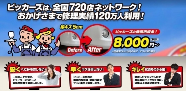 愛車の気になるキズ・へこみ直し 2分で無料お見積り!