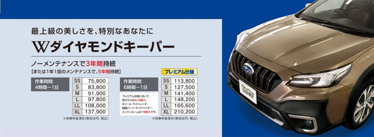 ノーメンテで3年!1年に1回のメンテで5年耐久ボディガラスコーティング ダイヤモンドキーパーシリーズ!