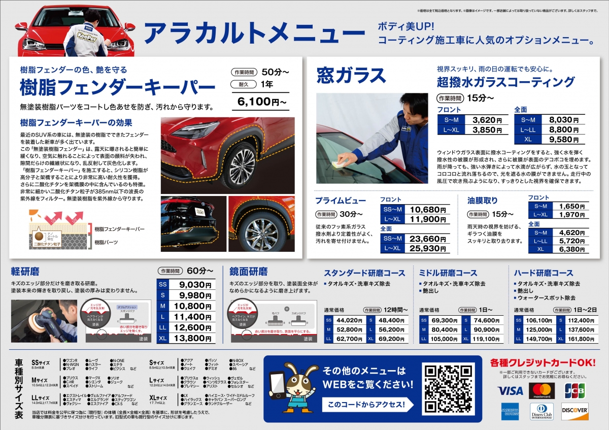 ホームページを見たとお伝え頂くと、ボディコーティングを5%OFFにて施工させて頂きます。