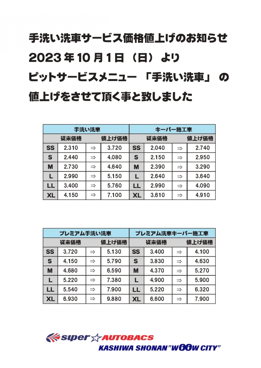 *お客様のお車のサイズによって料金が異なります*