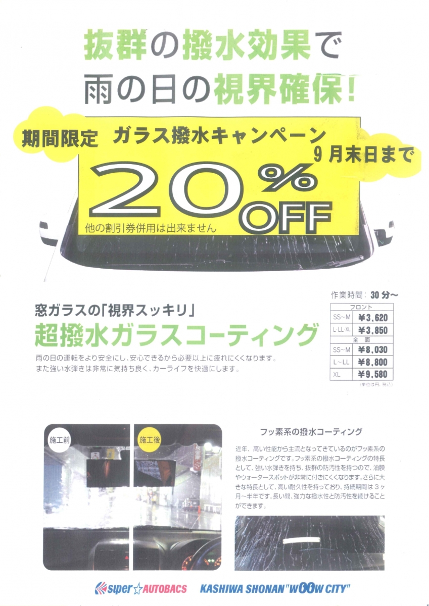 『超撥水ガラスコーティング』詳しい内容はコチラ