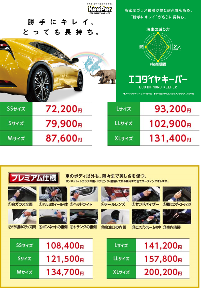 ※コーティング基本料金です。詳しくは店舗までお気軽にご確認下さい。