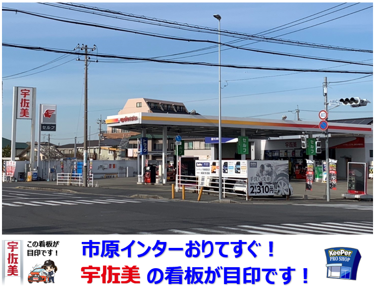 当店は、館山高速道路 市原IC の並びにある宇佐美看板が目印のガソリンスタンドです。