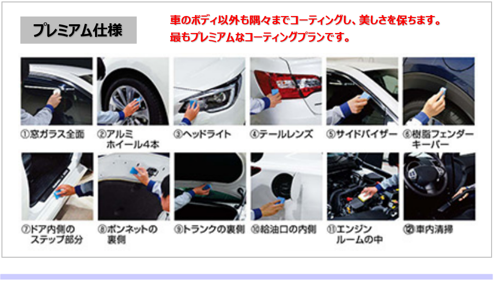 コーティング1級資格者はもちろんの事、2級資格者・コーティングアドバイザーがお客様のお車を一緒になって考え【愛車をキレイ】にするを意識して取り組んでおります。