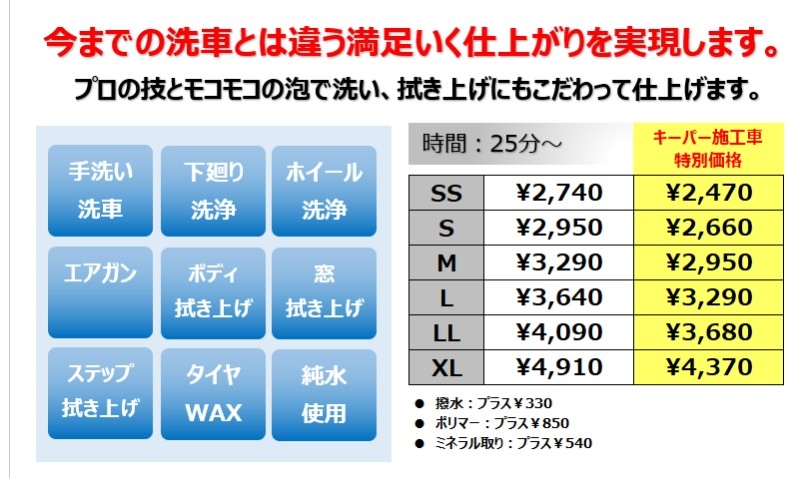 ★ 手洗い洗車とケアメニュー