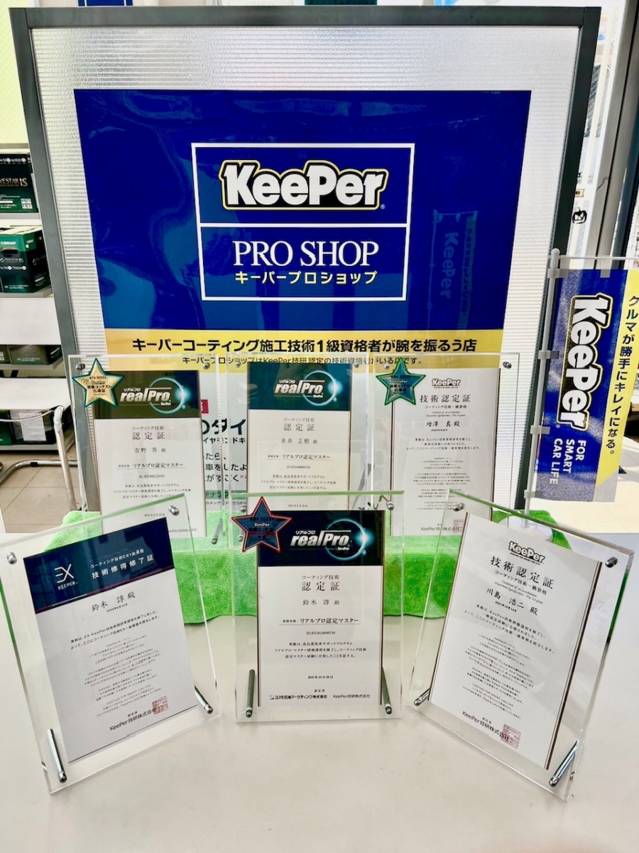 『キーパープロショップEXキーパー取扱施工店』です。大型のコーティング施工ブースを完備し、