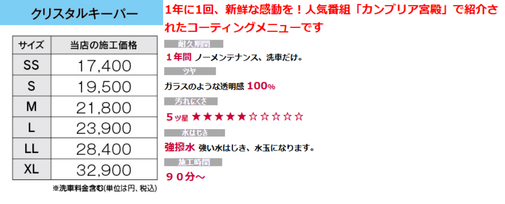 - 洗車 9:00~19:00 コーテイング 9:00~17:00