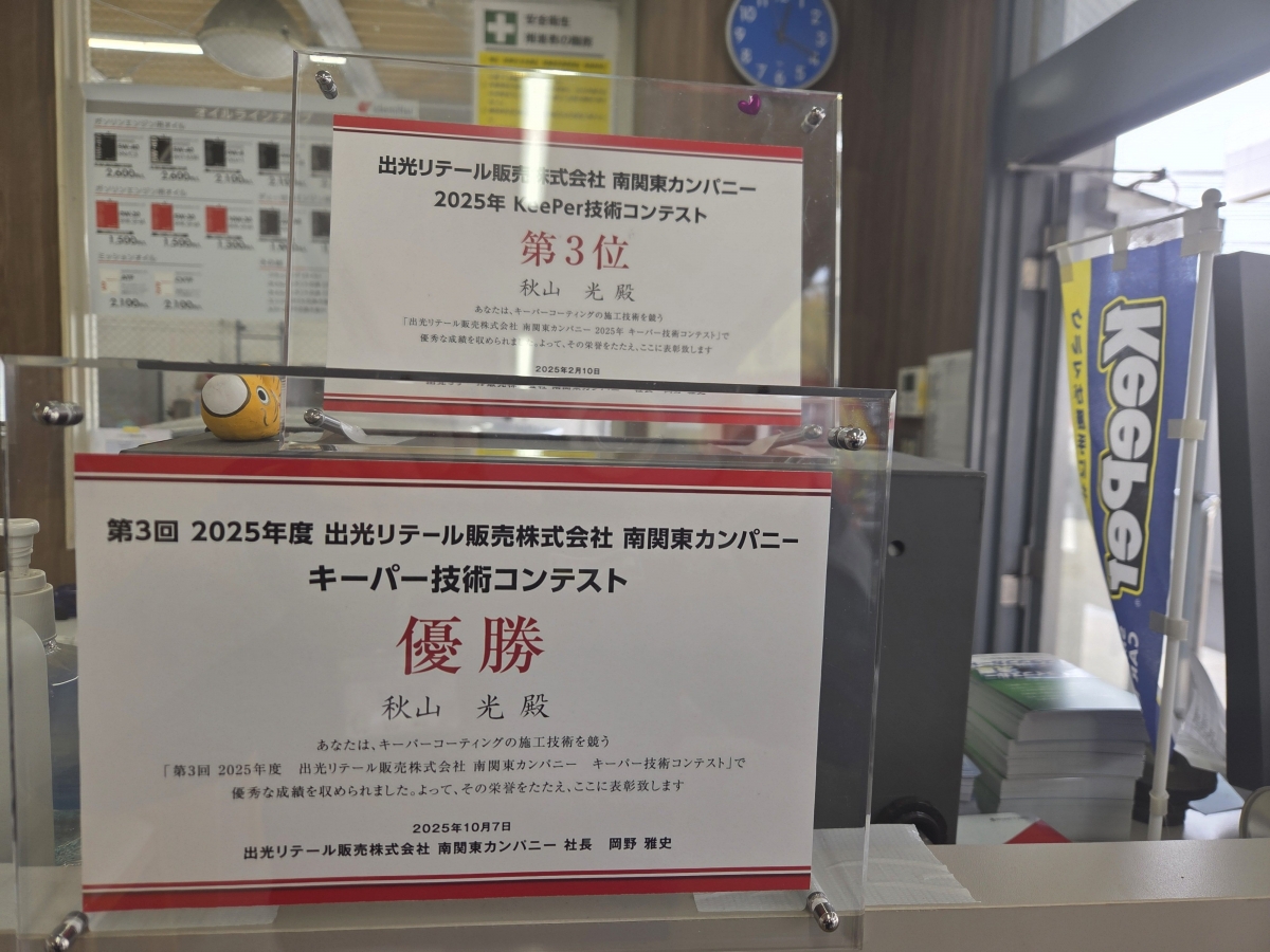 キーパーコーティング技術1級資格者
