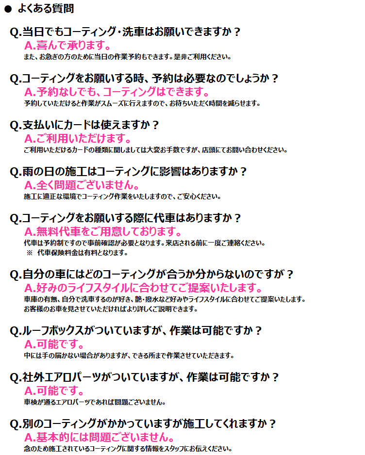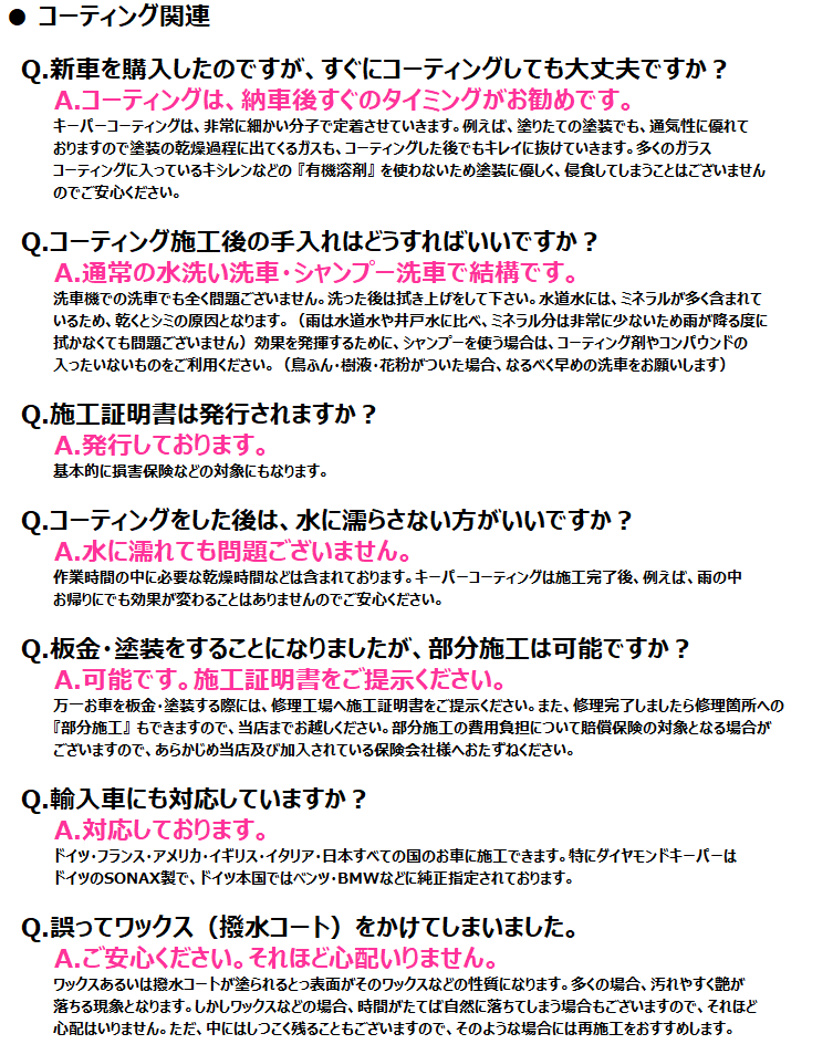 ★ コーティングメニュー