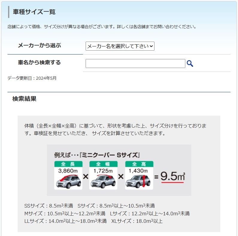 あなたの愛車の車種サイズは・・・?