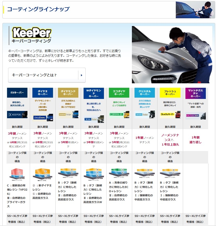 キーパーコーティング ラインナップ