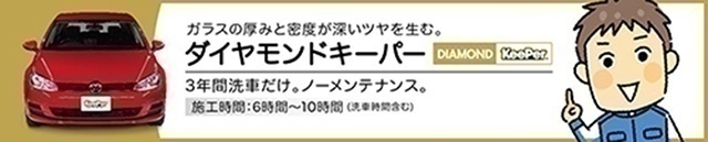 当店取り扱いの「Wダイヤモンドキーパー」「ダイヤモンドキーパー」「クリスタルキーパー」を施工されたいお客様は、是非当店をご利用下さい!!