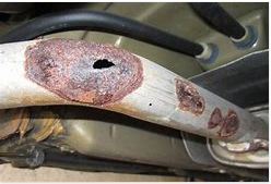 この潮風は鉄を錆つかせ劣化させます。写真のようにお車の下回り(シャーシ、マフラー)に錆が回り、穴が空いてしまうと車検も通りません。