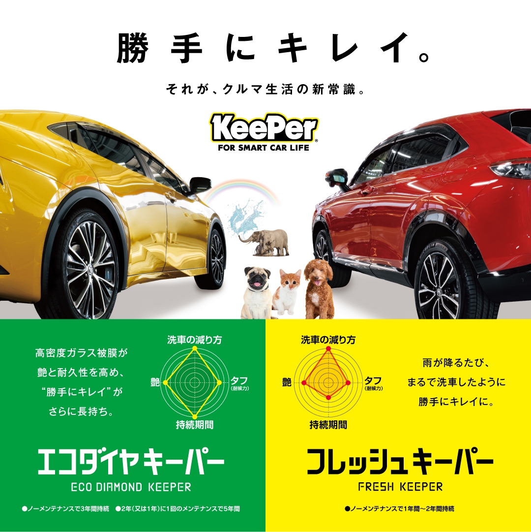 ダイヤモンドキーパーは1回の施工で、3年間ノーメンテナンス。洗車のみで耐久。