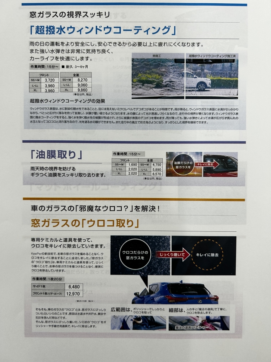 ご覧いただき、ありがとうございます。先日、お客様よりお問い合わせがありましたのでアナウンスさせていただきます♪各種キーパーコーティングの他にも様々なアラカルトメニューが存在します!!キーパーコーティン...