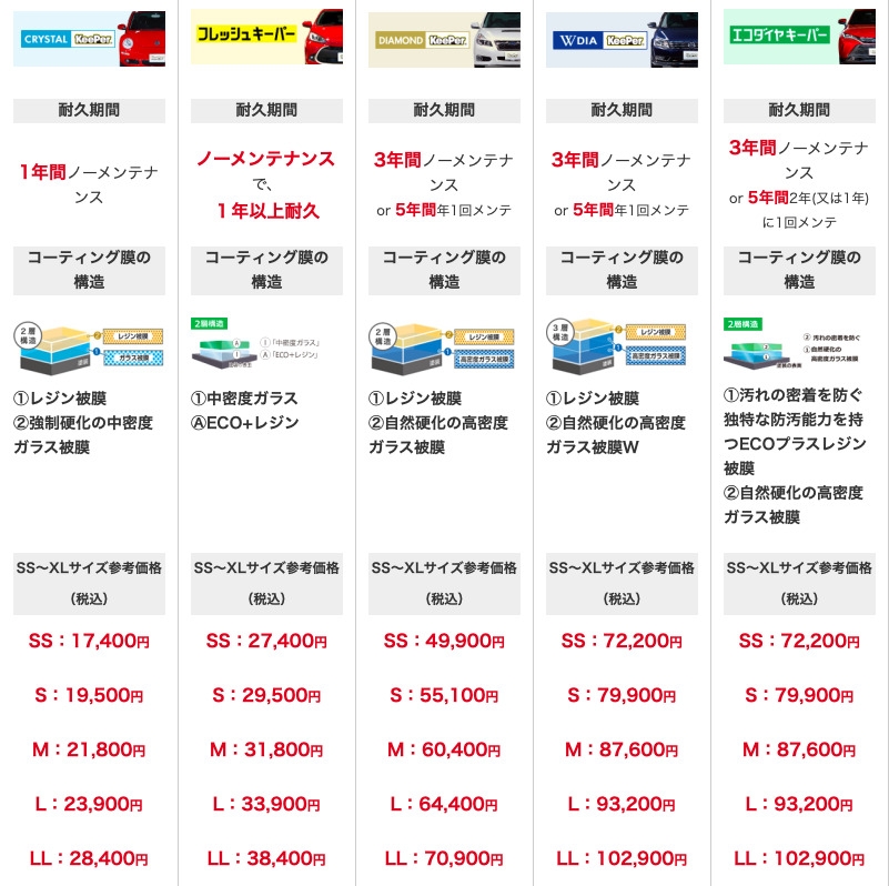 また、キーパーコーティングの他にも車検・鈑金・自動車保険・オイル交換・タイヤ交換など、