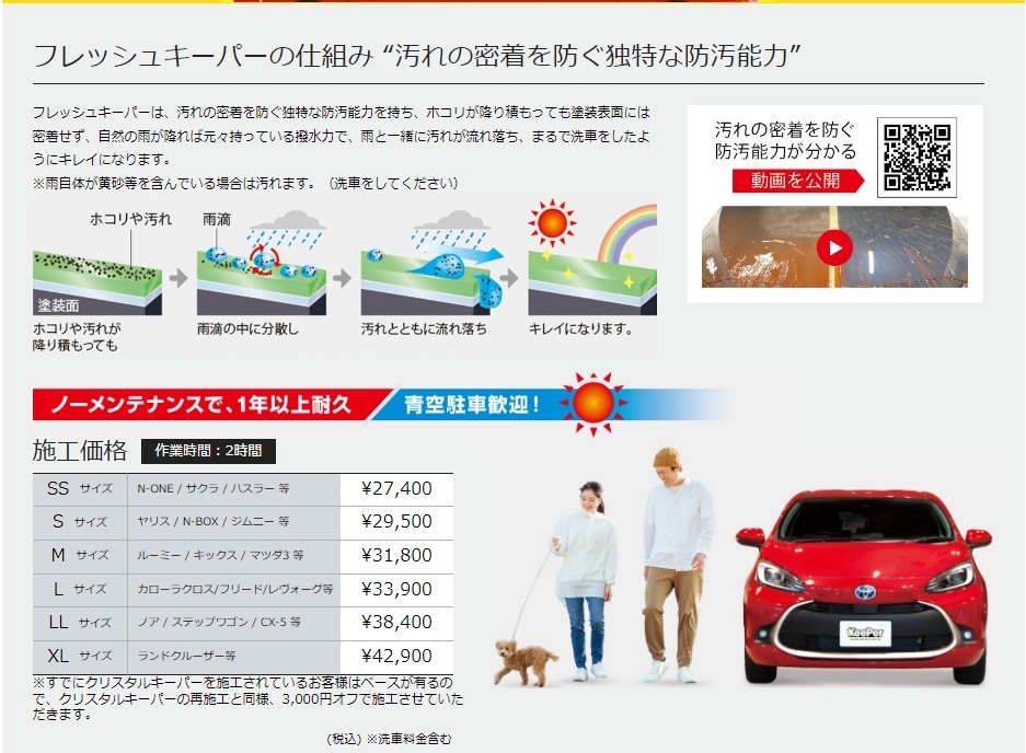 「強烈な撥水」「ガラス特有のツヤ」それに汚れがつきにくくなり、洗車回数が減ります。