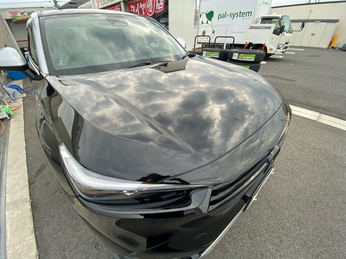 車のボディには新車の時から塗装表面に凹凸があり物や顔などを映すとぼやけて移りますが、軽研磨や鏡面研磨を施工して塗装の凹凸を均してからコーティングをすることで映りがシャープになり乱反射も抑えられるので輝きも増しより美しくなるのです。 写真のヴェゼルは納車1日目の車両の施工後です。研磨とダイヤモンドキーパーを施工しました。オーナー様も施工前と全然違うと驚いていらっしゃいました。 新車も研磨!!絶対おすすめです!!