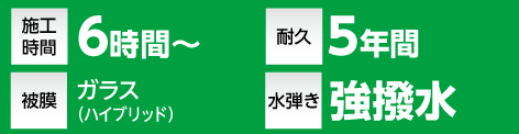 フッ素タイプは油膜取り後の施工により圧倒的な撥水力が長時間持続します。