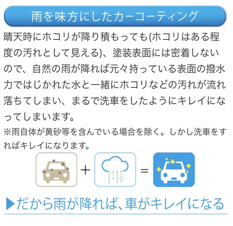 【ガラス被膜のツヤと撥水+雨が洗車になる自浄効果】