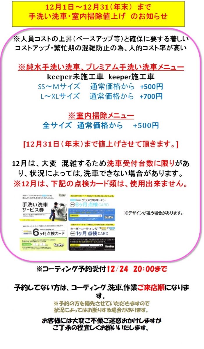 12月1日~26日まで、コーティングキャンペーン開催致します♪