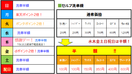 - 洗車・コーティング営業時間