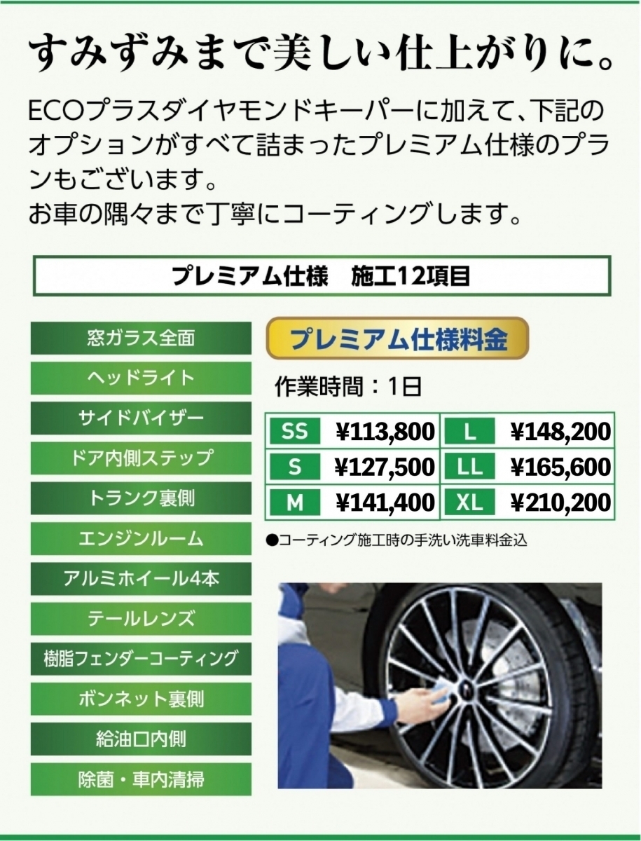 キーパープロショプでは、お車の大きさに応じて施工料金が変わります。