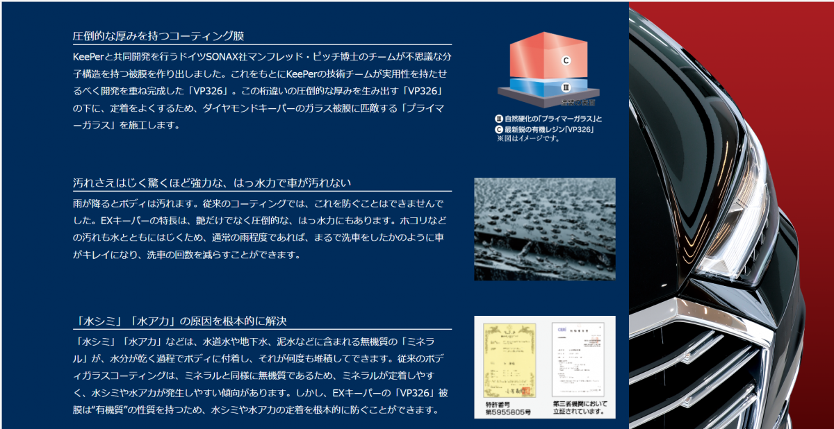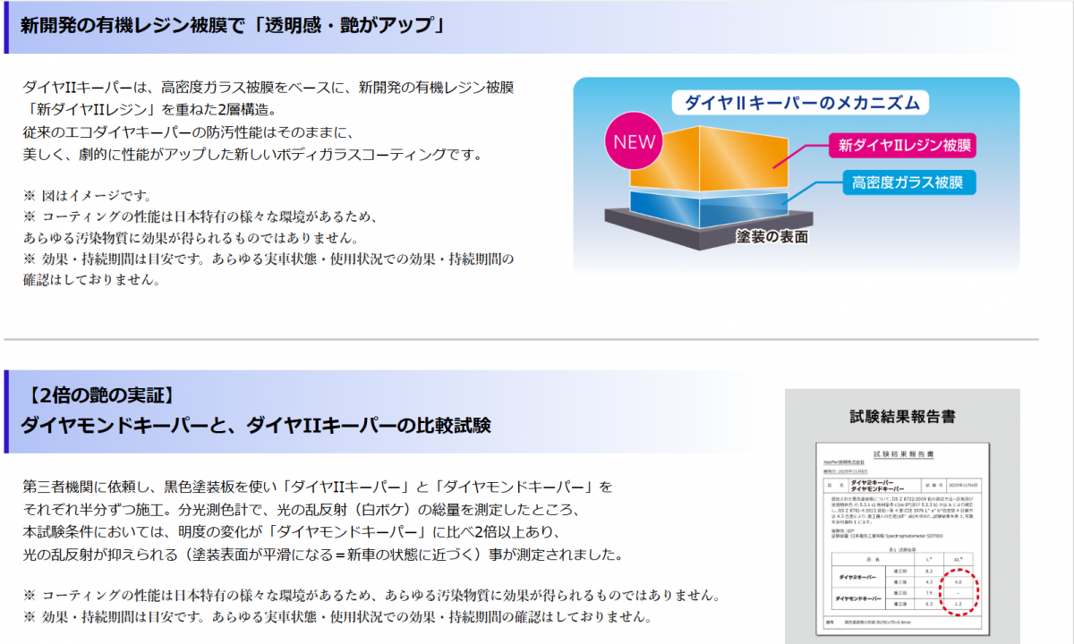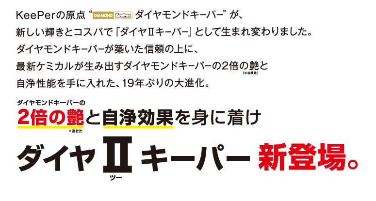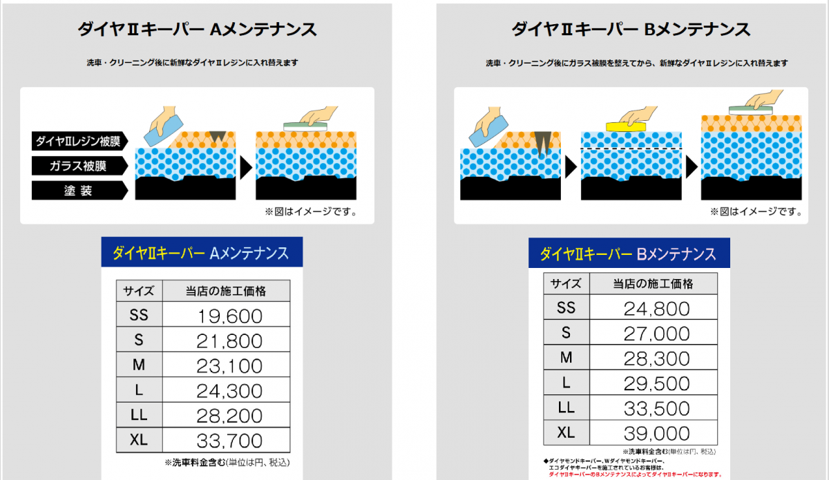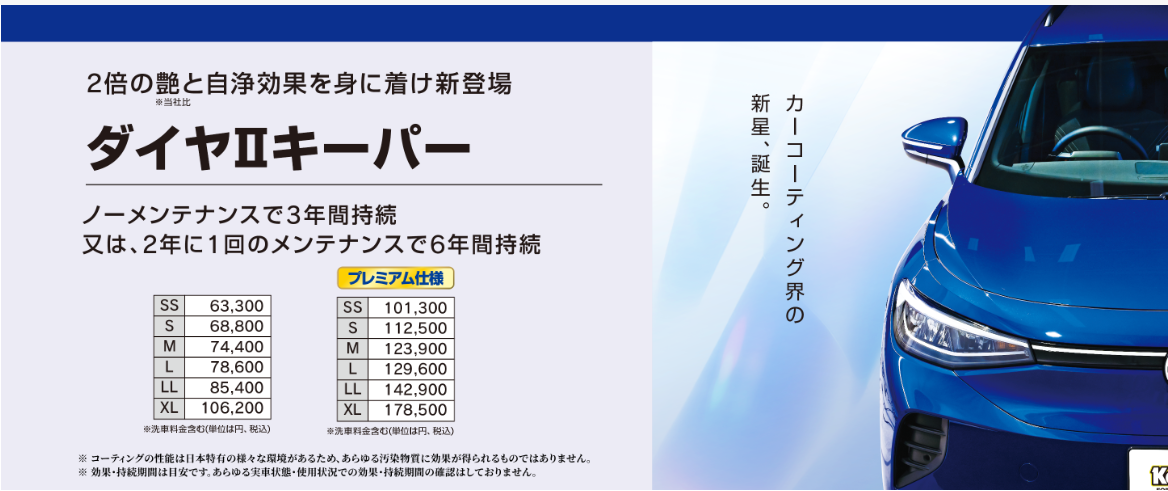 ※当店では、ダイヤⅡの販売に伴い『エコダイヤキーパー』『ダイヤモンドキーパー』『Wダイヤキーパー』の新規受付を終了いたしました。予めご了承ください。尚、メンテナンスは継続して承っておりますのでお気軽にお申し付けください。