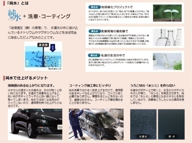 純水機導入により、当店の手洗い・コーティングは純水を使って作業します。