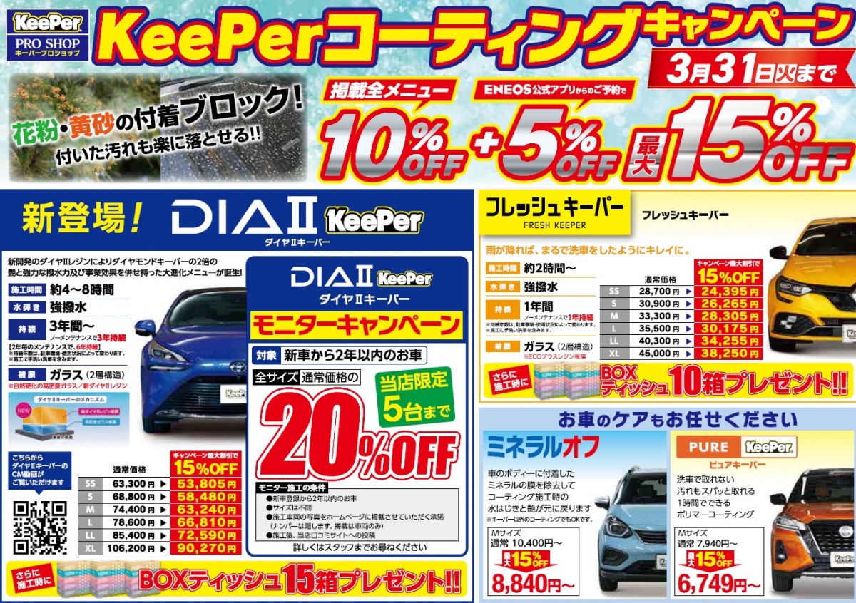 愛車を長くキレイに!キーパーコーティングにお任せください。