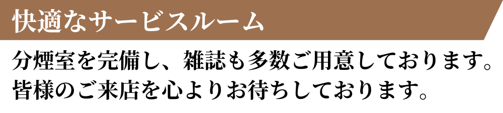 待合室は分煙室完備・雑誌も多数ご用意しております。