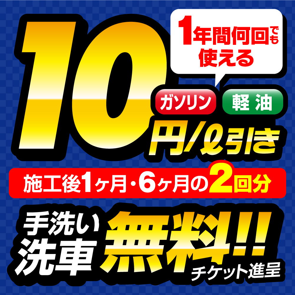 1年間、当店で何度も使えるガソリン・軽油10円/ℓ引券
