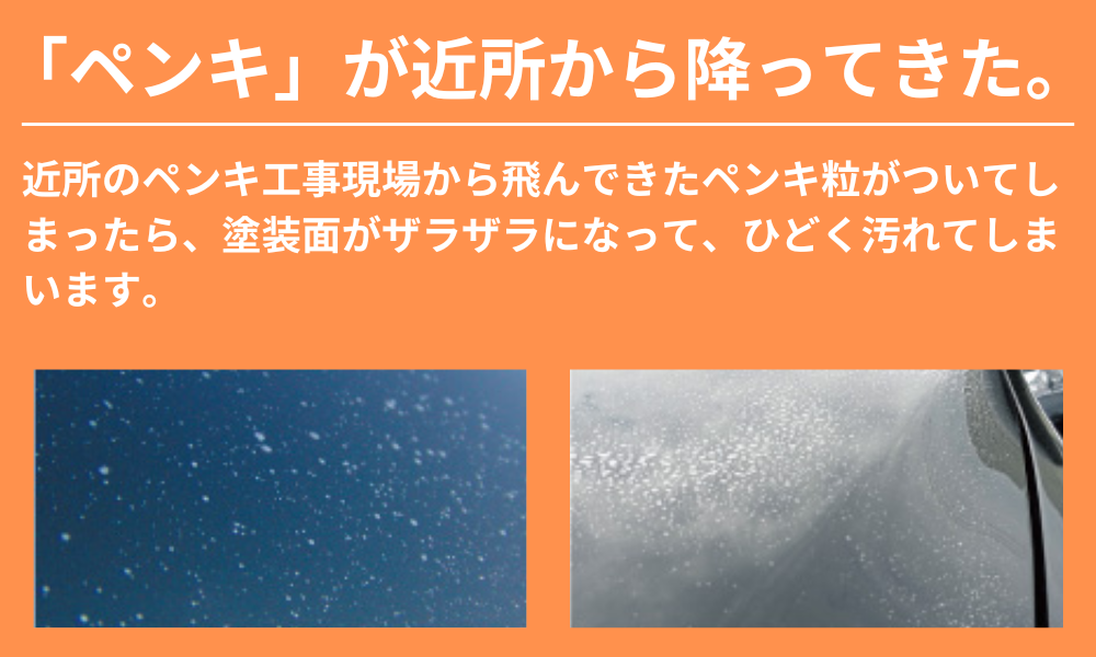 キレイにペンキを取ったあとにコーティングで仕上げてお返しすると、「元通りよりキレイになった。」と、むしろ笑顔でお帰りいただいています。