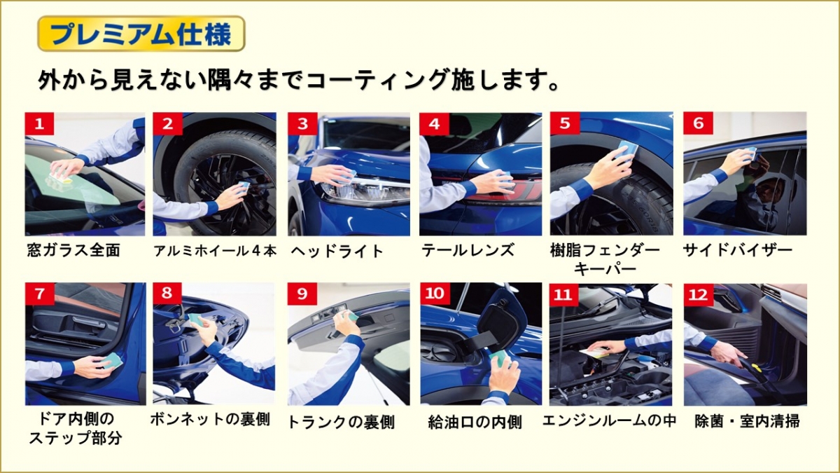 さらに、施工後1ヶ月・6ヶ月点検カードをお渡しし、無料手洗い洗車をさせて頂くと同時に、コーティングの状態を確認致します。