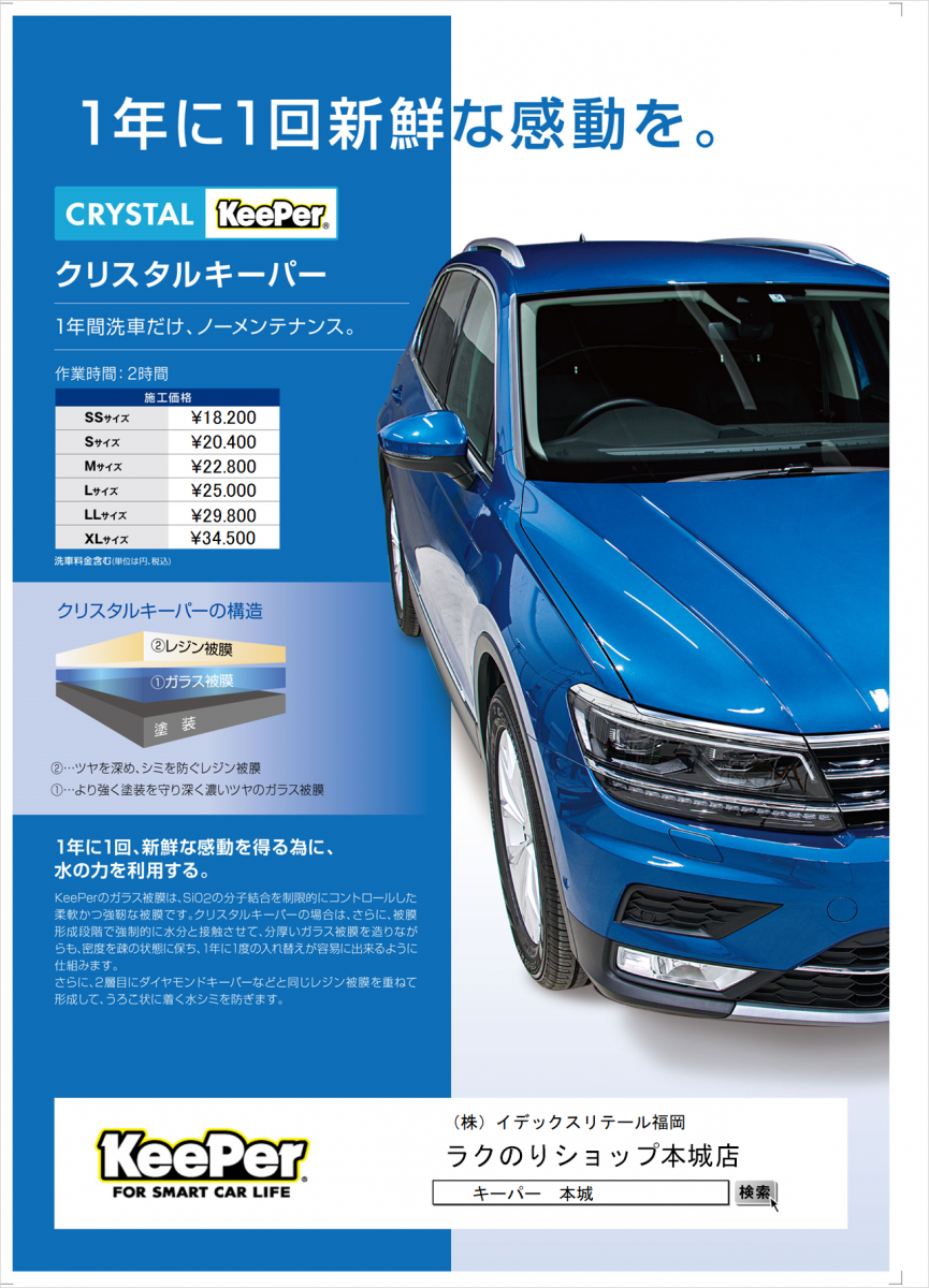 また、クリスタルキーパーは2回目以降のコーティング施工でさらにキレイさがアップします。