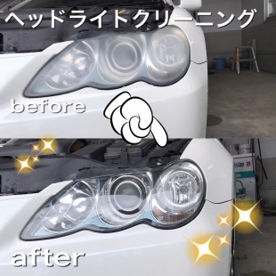 お車のヘッドライト黄ばんでいませんか?ヘッドライトを綺麗にすると、車の美観が引き立ちさらにライトの明るさが蘇ります。