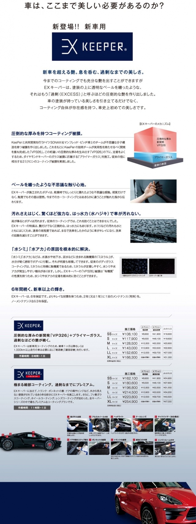 施工時間約3時間で1年間洗車だけでキレイ! 施工されたお客様に大好評なコーティングとなっております。