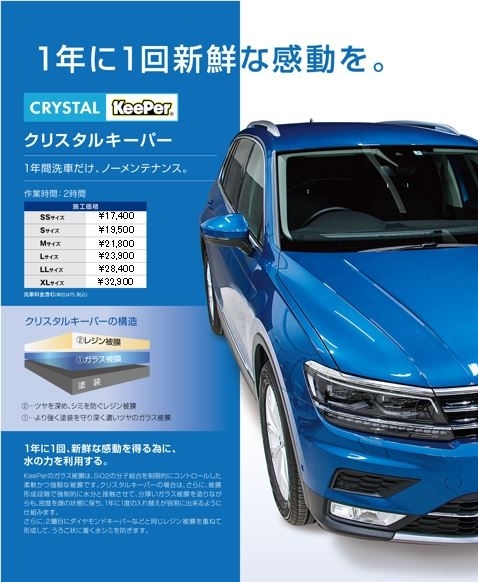 施工後は洗車だけでOKなのも、クリスタルキーパーの特徴です。