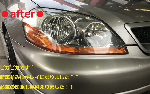 ?このピカピカの状態でライトにコーティング処理を行い、キレイを長続きさせます^^